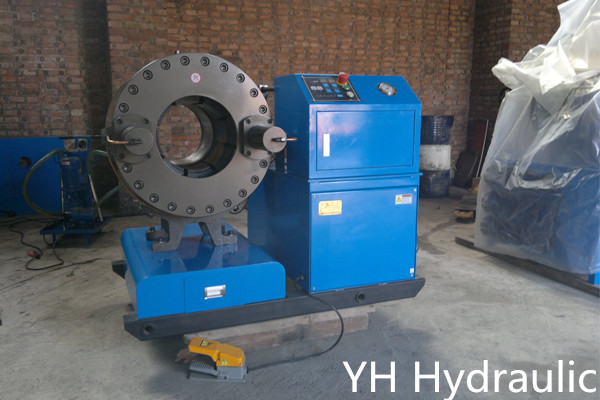 Industrial hose crimper 8’’ YHHC-120F can crimp hydraulic hoses or industial hoses from 4’’ to 8’’. Pls take a note that in the sheet, swaging range refers to the size of inner dimension of the dies not hoses. The actual max.crimping force is 23000kn. It is a powerful crimping machine and equipped with three sets of dies. The die size should be decided by customers. If you need more dies, pls feel free to contact our sales department for quoting the prices. YH Hydraulic is able to offer other crimping machines like max. Size 12’’, 16’’, etc.